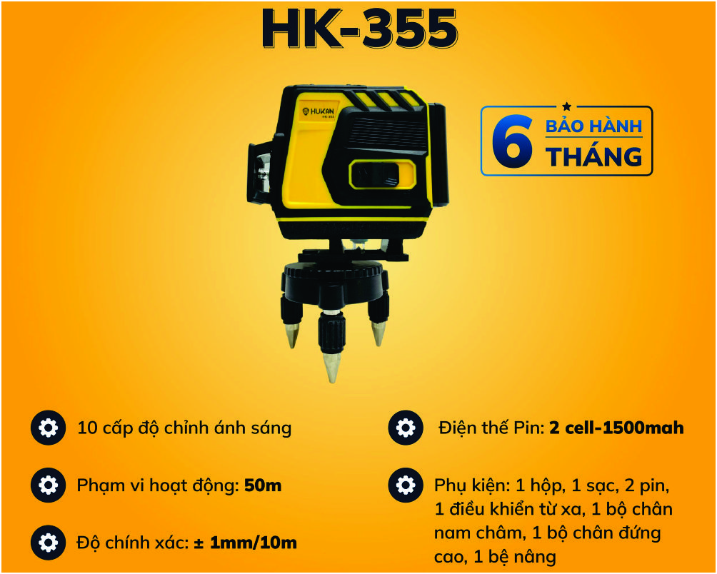 Máy bắn cốt 12 tia laser HK-355 là một loại máy phát ra các chùm sáng laser quét ngang, quét dọc. Dùng để xác định các điểm cân bằng hay các đường thẳng, đường ngang vuông góc một cách chính xác. Giúp cho người thợ xây dựng hay làm nội thất đo đạc nhanh c