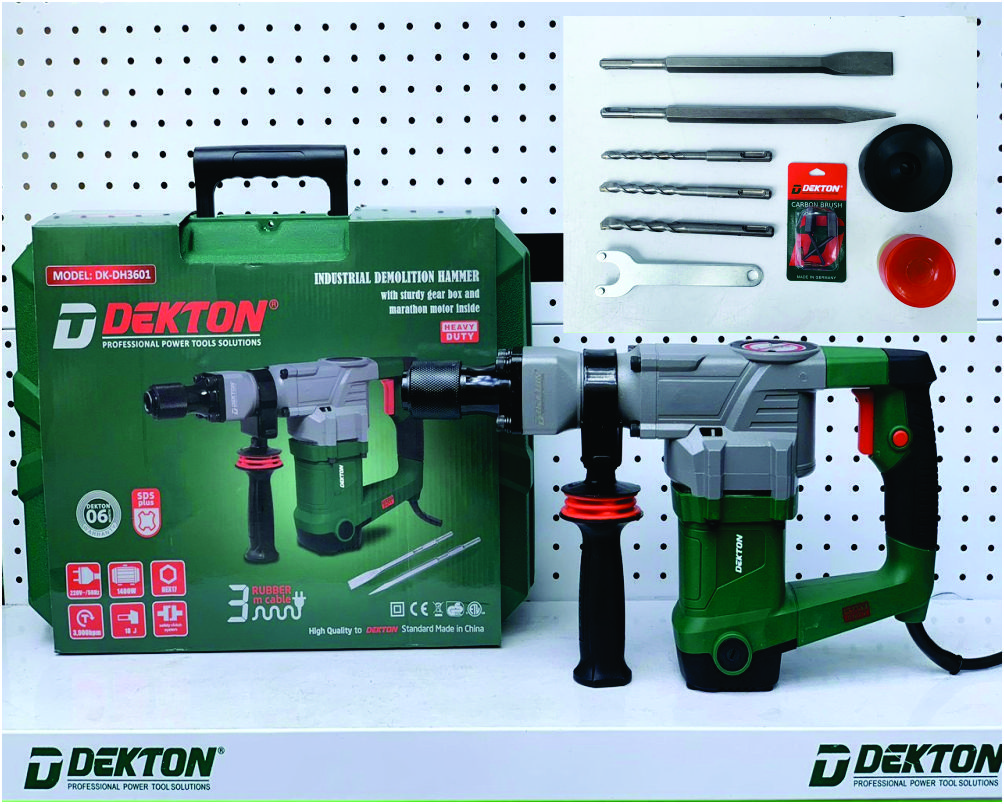 - Công suất: 1050w - Điện áp: 220v/50hz - Đầu gài: 14mm - Tốc độ không tải: 3000vòng/phút - Phụ kiện: 1 cặp chổi than, 1 tay cầm phụ, 3 mũi khoan, 2 mũi đục.